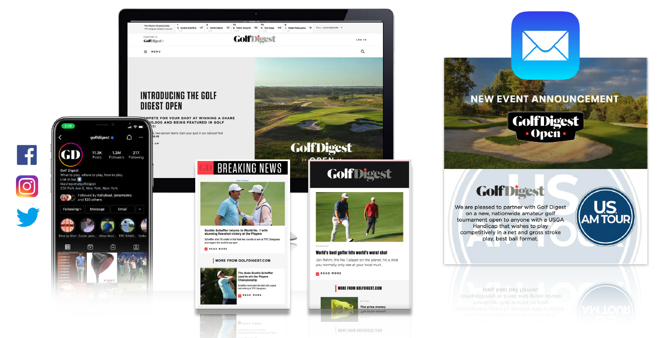All events that Golf Digest produced involve heavy creative input and production execution. From the initial pitch presentation to promotion banners, landing page, and on-course items that include blade flags, pin flags, tee markers, registration tent, swag, trophy, and winner check (as needed).